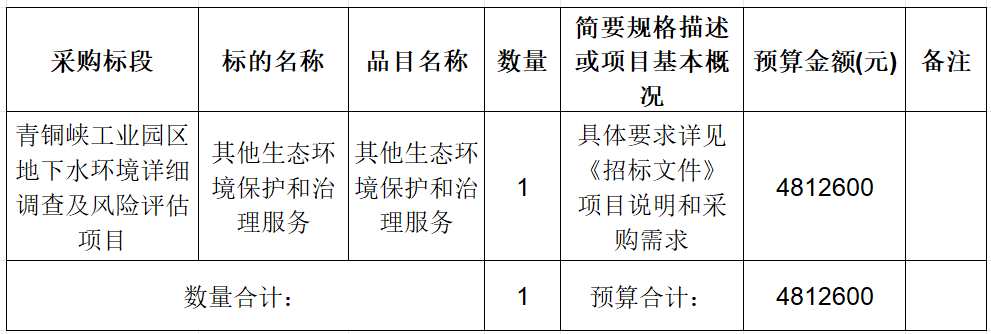 【招标分享】预算481.26万元,吴忠市生态环境局青铜峡分局青铜峡工业园区地下水环境详细调查及风险评估项目招标公告