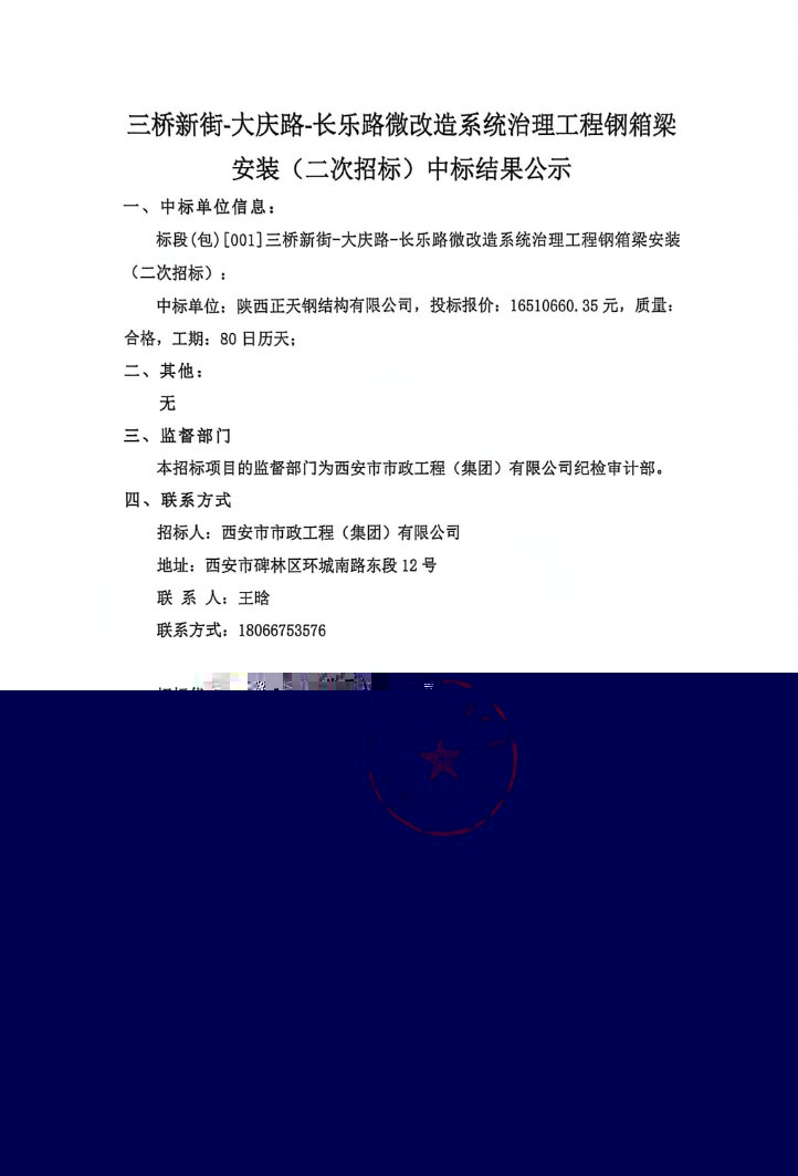 三桥新街-大庆路-长乐路微改造系统治理工程钢箱梁安装(二次招标)中标公告